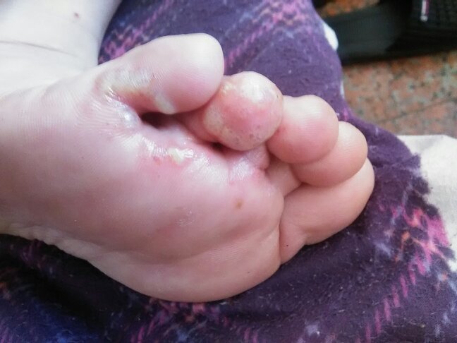 1、糜烂型:好发于第三与第四,第四与第五趾间。初起趾间潮湿,浸渍发白或起小水疱,干涸脱屑后,剥去皮屑为湿润、潮红的糜烂面,有奇痒,易继发感染。