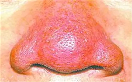 2、影响形象:如果酒糟鼻在前二期不及时治疗就容易导致鼻部肥大,形成鼻赘,状如癞蛤蟆趴在脸上,极其难看且极其伤自尊。