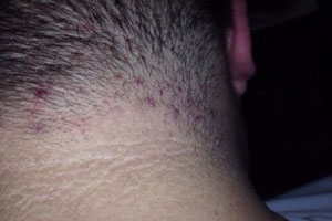 3、颈部毛囊炎:瘙痒或有轻度疼痛,排出少量脓血,结成黄痂,痂脱即愈,不留疤痕。
