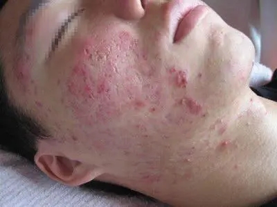 4、囊肿性痤疮:表现为大小不等的皮脂腺囊肿内含有带血的粘稠脓液,破溃后可形成窦道及瘢痕。