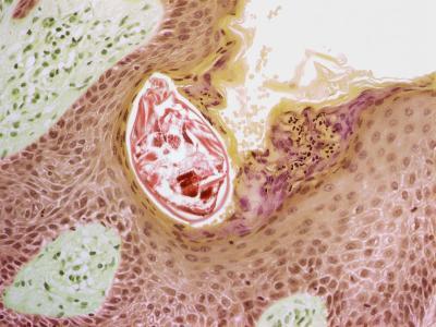 4、患处皮肤肥厚粗糙,嵴沟明显,呈苔藓样变。颜色为褐红或褐色,表面常附有糠皮状鳞屑,伴有抓痕,结痂及色素沉着。部分皮损上似可出现新的丘疹或水疱,抓破后有少量浆液渗出。发生于手足及关节部位者,常呈破裂或疣状,自觉疼痛影响活动。