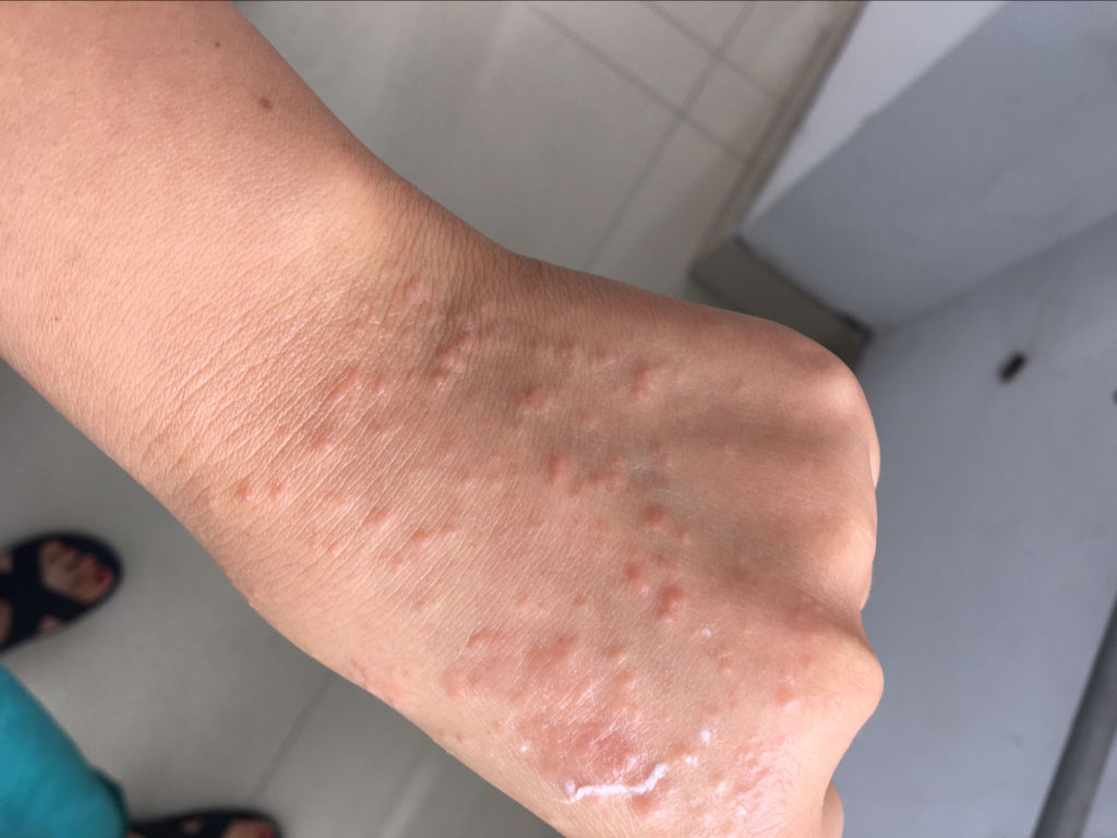 手背起小疙瘩要考虑:湿疹、疥疮、寻常疣
