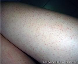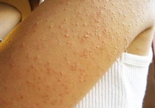 2、从外观上看,有针点般的小丘疹,散在性分布,粗糙,颜色呈肉色、红褐色、棕色或灰黑色,看起来很像“鸡皮疙瘩”,大部分的疹子均无痛痒症状。
