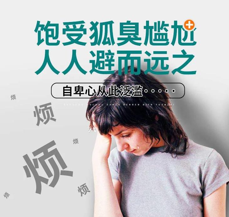 腋臭患者引起自身散发的臭味受到周围人的“避而远之”甚至歧视,更是在精神上受到无情的打击,因为被“排挤”而自卑、压力大,继而睡眠差、脾气暴躁等。此外,腋臭并发原因之一是细菌的存在,不断滋长的细菌会促使皮肤产生一系列皮肤病,腋下的皮肤比较薄弱,因患者的不当用药、偏方治疗,或者香水掩盖臭味,皆可加重皮肤负担。