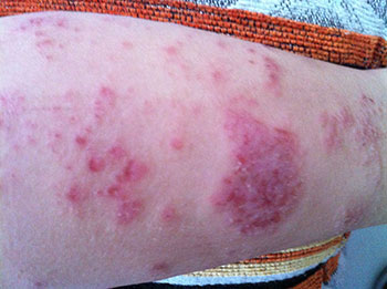1、湿疹:湿疹是常见皮肤病的一种,它的发病特点是伴有比较剧烈的瘙痒感。湿疹可以分为好多类型,如慢性湿疹、急性湿疹和亚急性湿疹等。其特征为多发性损害、病程迁延、常反复发作,患者自觉病变部位剧烈瘙痒,初期有成片的红斑以及密集或分散的、呈针头大小的丘疹性水疱,后期则可出现糜烂、渗出、结痂等。